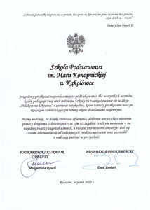 Podziękowanie za udział w akcji "Polakom na Ukrainie"